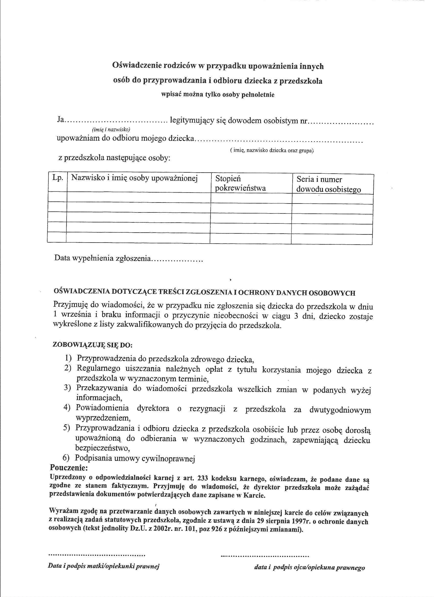 Jednorazowe upowa偶nienie do odbioru dziecka